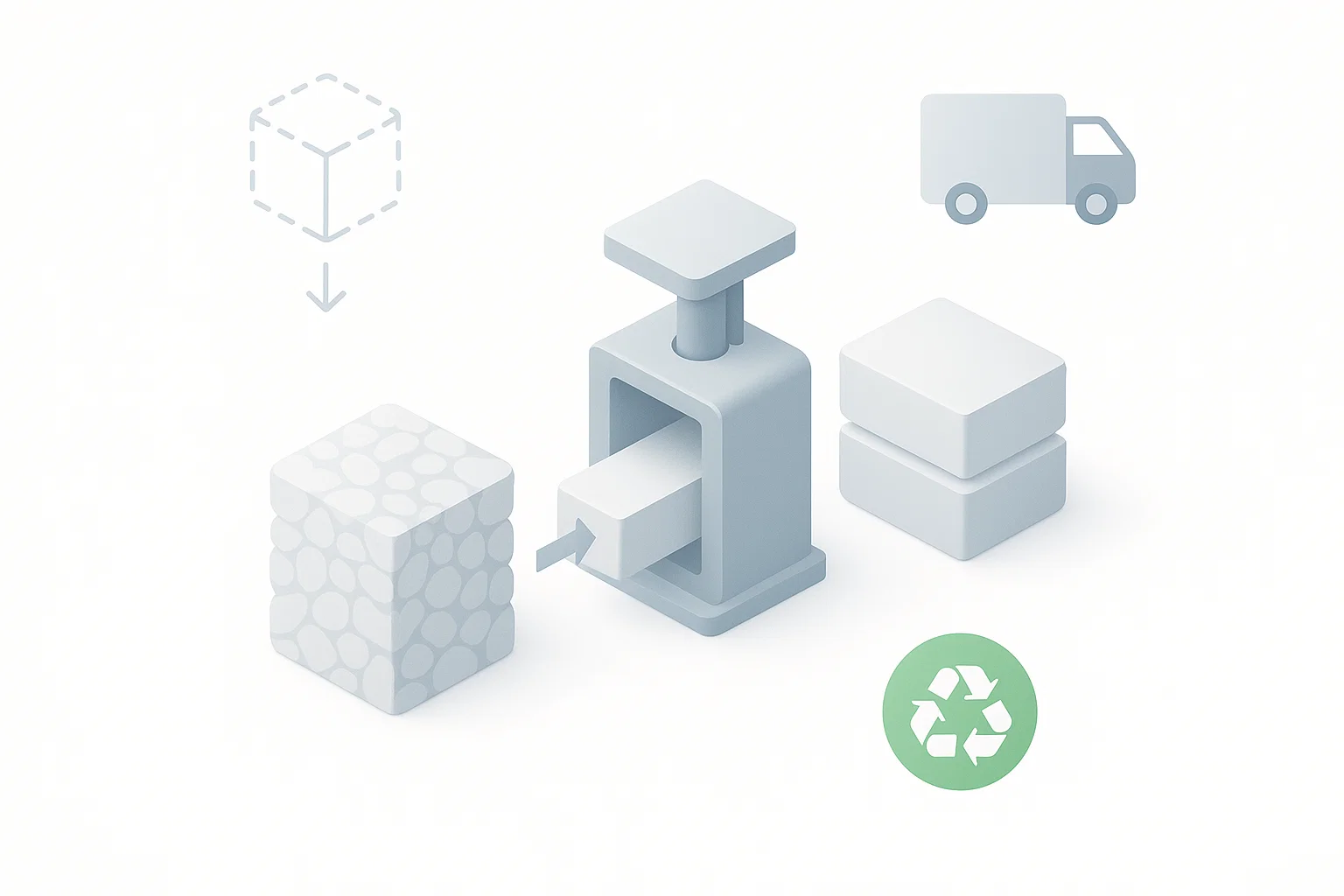 - Facilitates High-Quality Recycling: By converting EPS foam into uniform, dense ingots or pellets, densification improves the consistency and quality of recycled raw material. This makes it easier to remelt and reform into new products such as packaging, insulation, or construction materials.